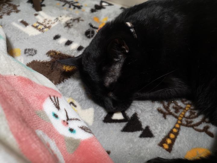 いつもはリビングのクッションでのんちゃんと寝てるのに、一緒にいてくれるんだねー
