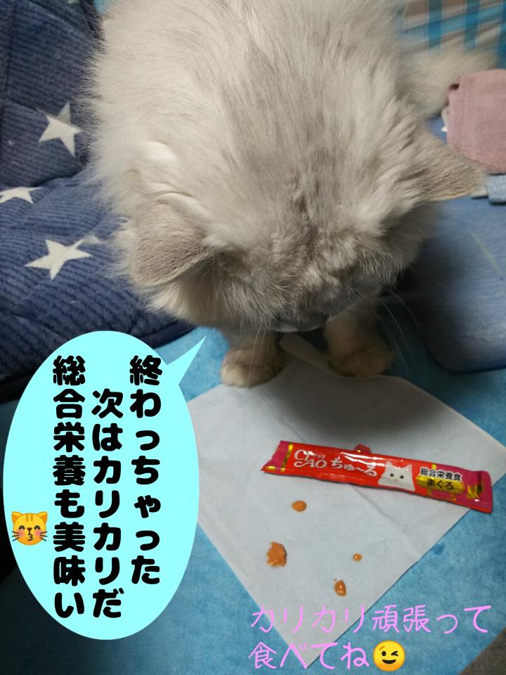 😊ちゅ~るを食べるとカリカリの食べが良いです👍