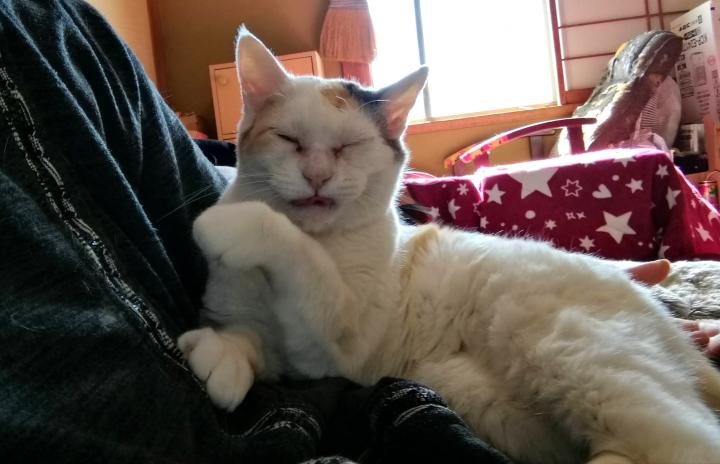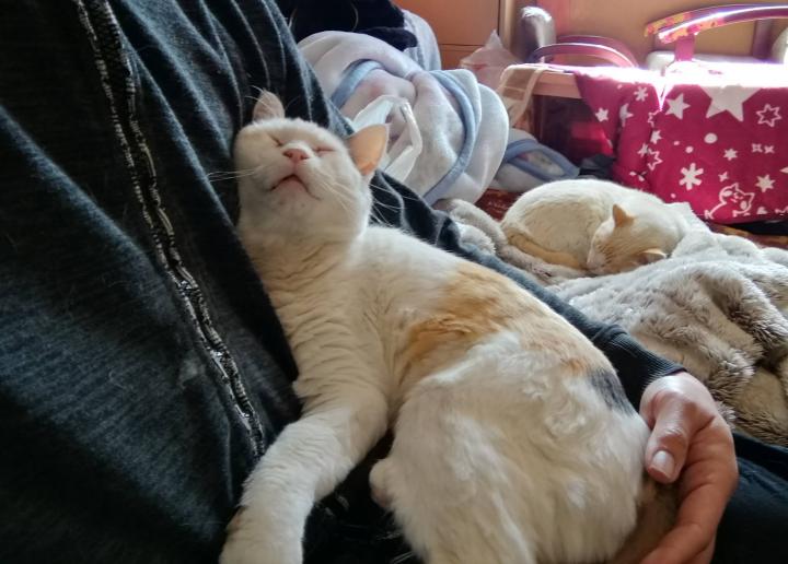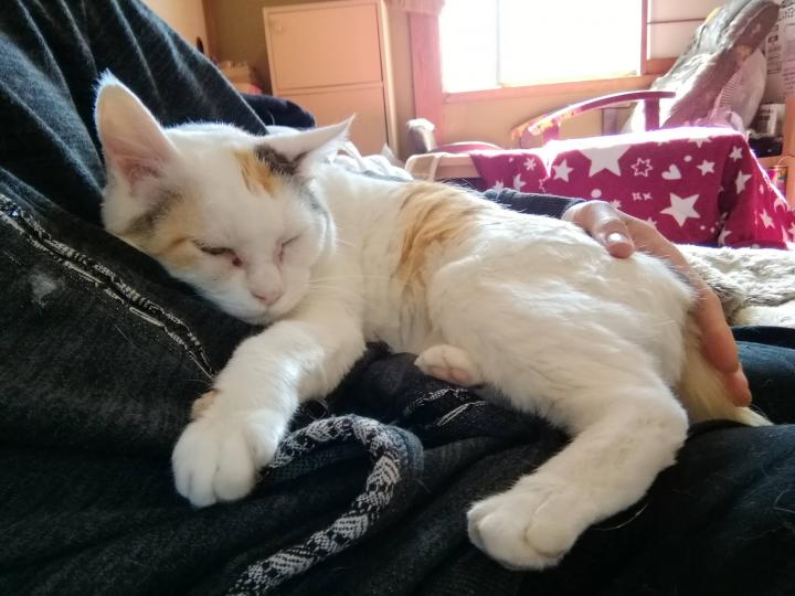 予定を変更し、今もまだヒザの上で安眠中です😄