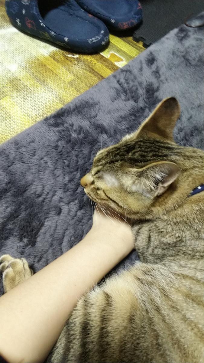 夜いつもなら、元気に暴れる時間にたまぁーに、隣に横になって寝てるんです。