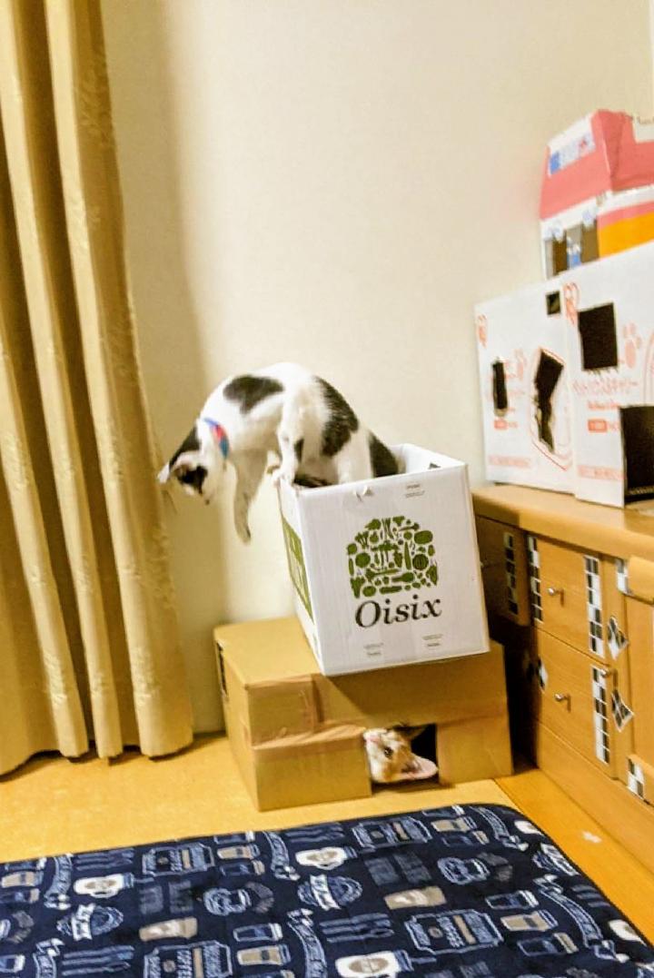 待ち伏せするナッツにゃんから目を逸らしたらカメラ目線だったキッツにゃん📸
