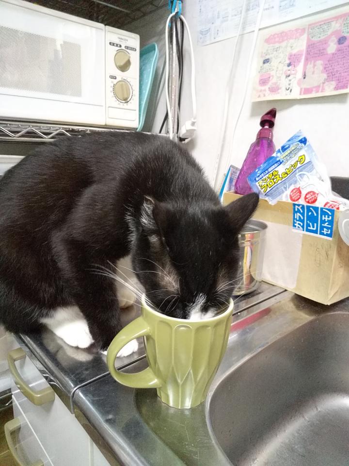 おかあさんのお湯を盗み飲む・・・(´-ω-`)