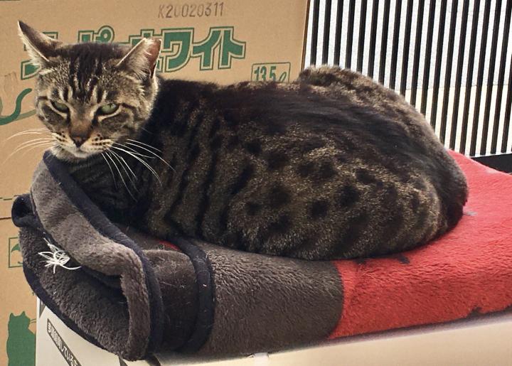 毎日何度もちゅーるを食べにやってきます。最近は寝てる時間も出てきました。