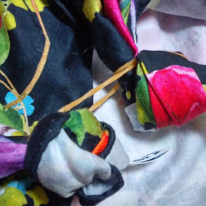輪ゴム一本+大判ハンカチとかバンダナとかスカーフ