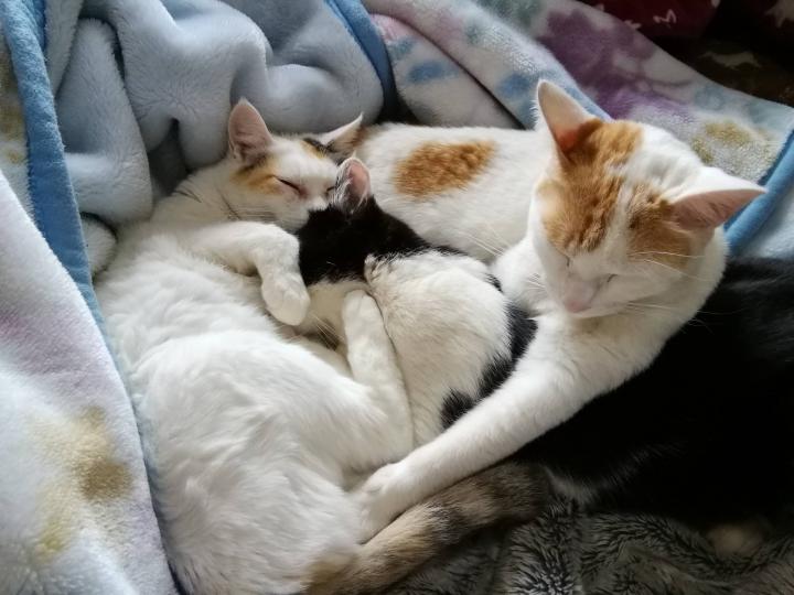 幸せで暖かなこの団子、ジャマをするのはヤボというもの…。
