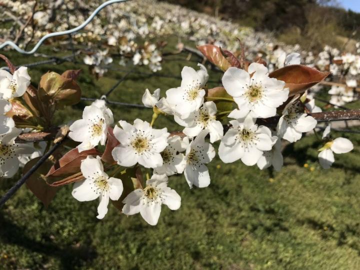 実家(郡山)から届いた梨の花、今年も綺麗に咲いているようです。昨年は7年前に亡くなった父のお墓参りで帰京し、実物を見る事ができました。今年は姉の七回忌もあり、また花を見たいと思っていましたが、こういう状況下、諦めざるを得ませんでした😢。珍しく雪が梨の花を覆い尽くす4月の寒い日に亡くなった父、60年前に山を切り開き、斜面で梨栽培を始めました。今は姪がお婿さんと梨畑を広げて、有機栽培で育てています。大震災の放射能影響で苦労しながらも味でファンを増やしています😊。散歩で梨の花を見ると父の棺の上に置かれた梨の一枝を思い出します。来年は、梨の花の時期に{お墓参りできますように…🙏。