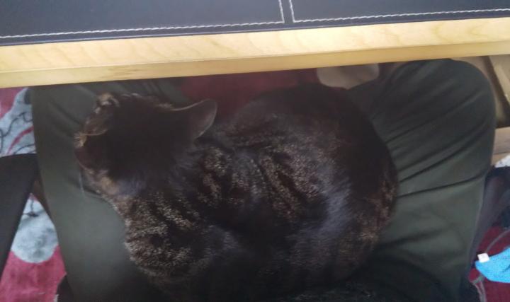 くるみくんを膝にのせながら(あぐらかいて、そこに乗ってきた)お仕事です。