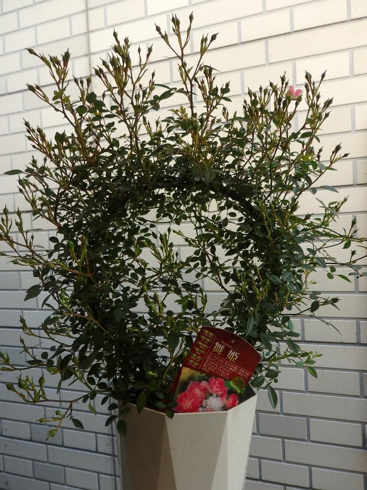 目ざとく、見つけた、ミニバラ(つるバラ)の鉢植えを購入。
