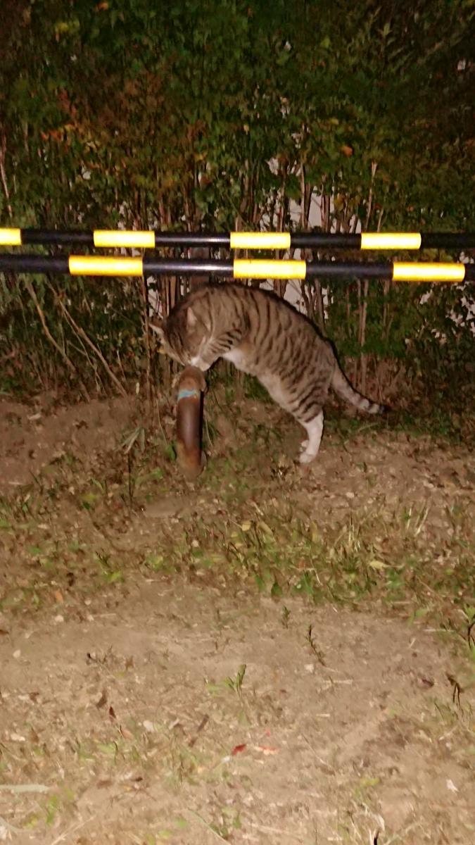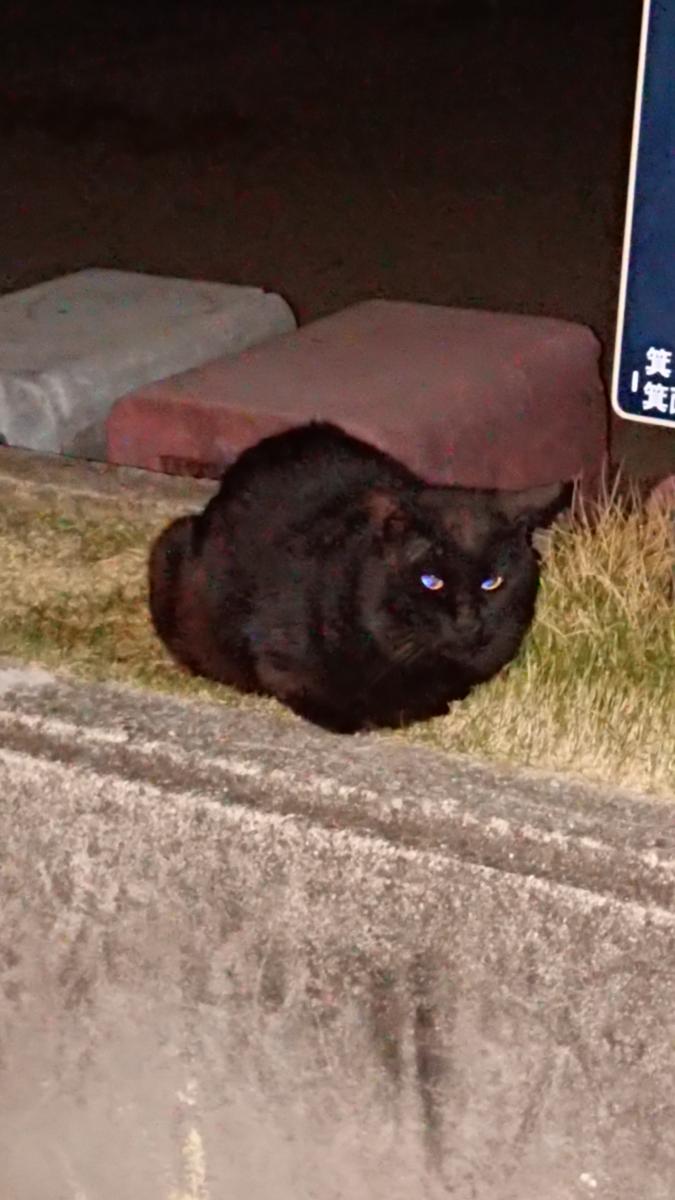 公園で少し毛足の長いフカフカ毛並みのクロネコ10号、こんばんは~