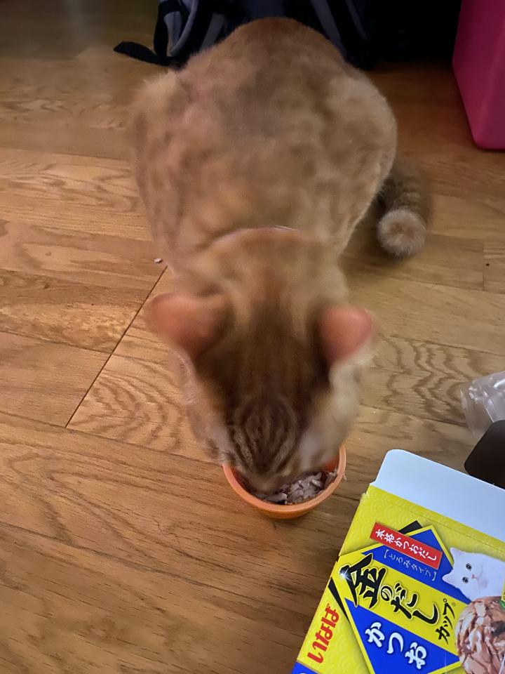 逃げ出した飼い猫のあられくんはさんざん遊びまわりお腹が空いたのかちゃっかり帰ってきました。