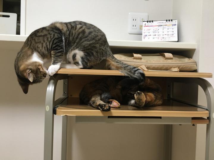 最初はビビって様子見してたゆずポンも、すぐに狭い所に潜り込んで、こんな感じに。