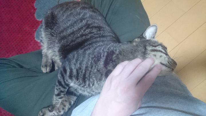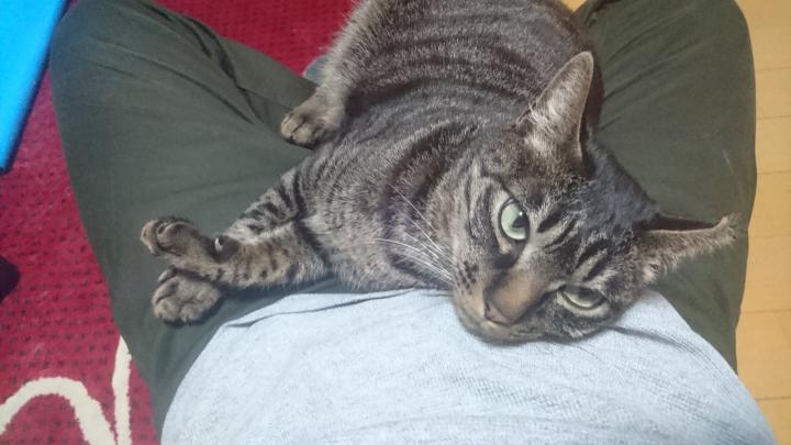 膝上で寝てたのですが、スーパーが閉店になる時間が迫っていたので、下ろして買い物いってきました。