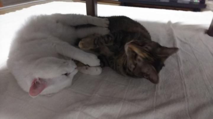 譲渡会で初めて会った時も、こんなふうにアンモニャイトで寝てたれーゆん。天真爛漫で怖いもの知らずな可愛い女の子。