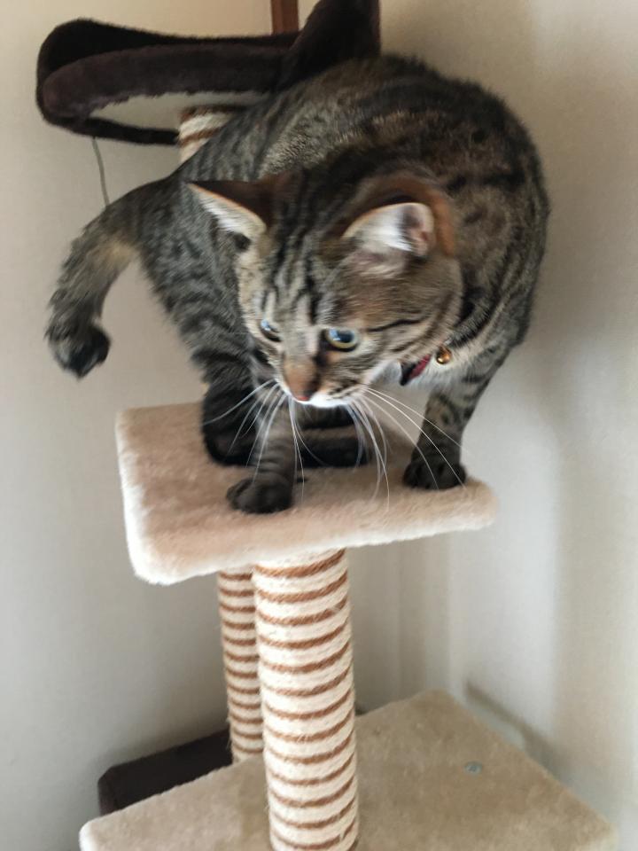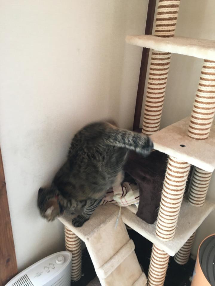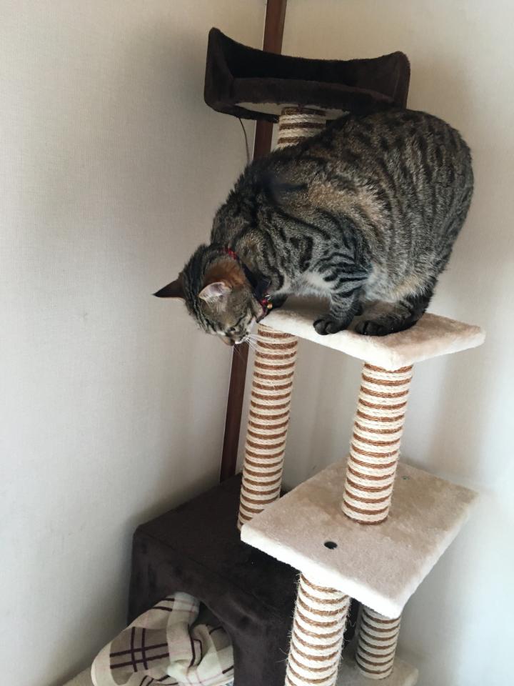 空を飛び、最後に辿り着いたのはキャットタワー笑