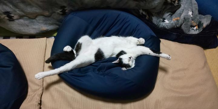 神経質なキッツにゃんも"びろーん、べろーん"と安心しきって炬燵の外で爆睡出来るようになり嬉しい限り😁