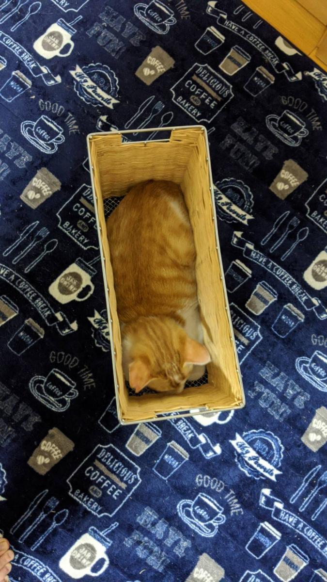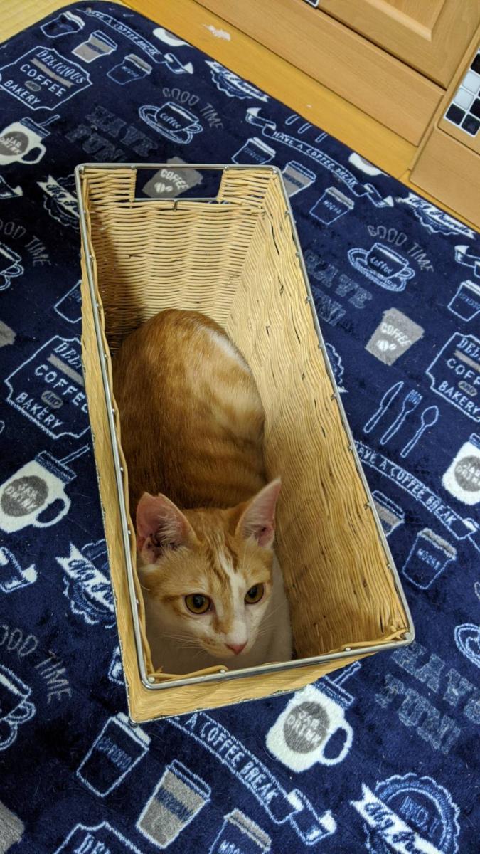 自由奔放なナッツにゃんの最近のお気に入りは雑誌立ての籠に自ら収納されること🤭