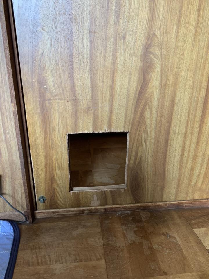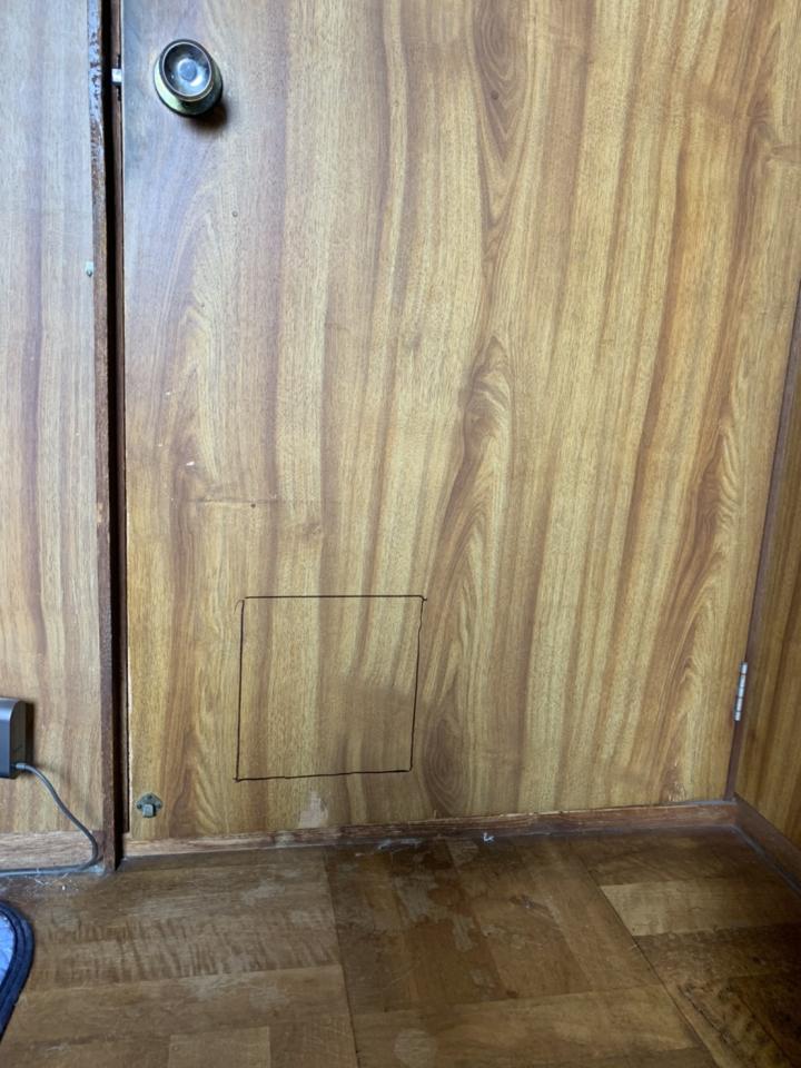 1.ドアの何処に付けるか場所を決めてペットドアの型を段ボールで型取り