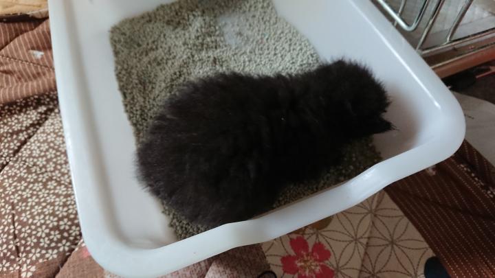 初めてトイレ砂に放り込んでみました。