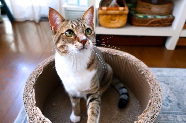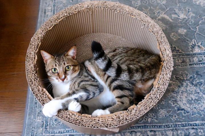 お年玉のサークルスクラッチャーもだいぶ使い込んできたので😅