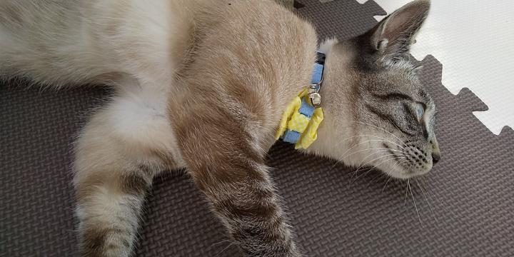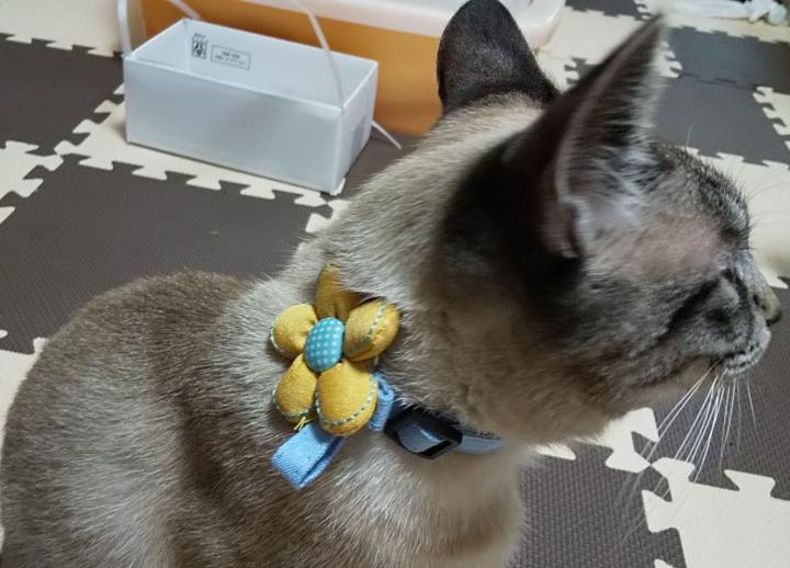 今までの首輪だと蒸れていましたが、今のは布製なので快適のようです。
