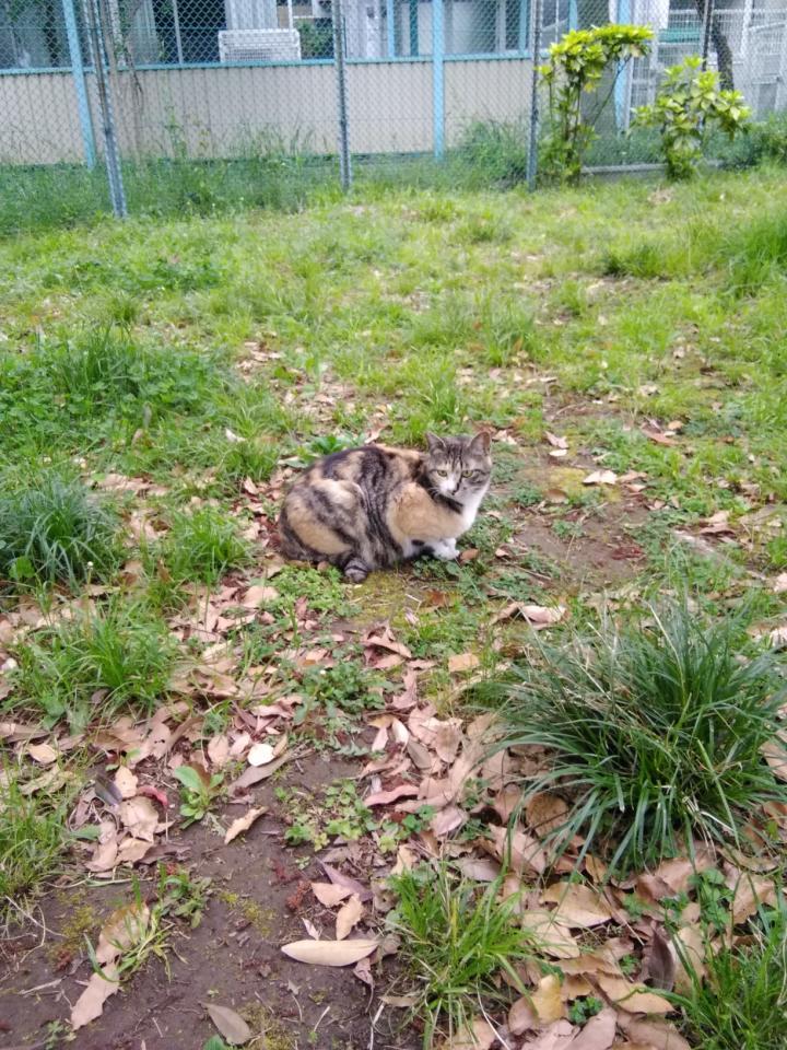 公園のミケです。今日も元気です。朝食後の憩い、この後、