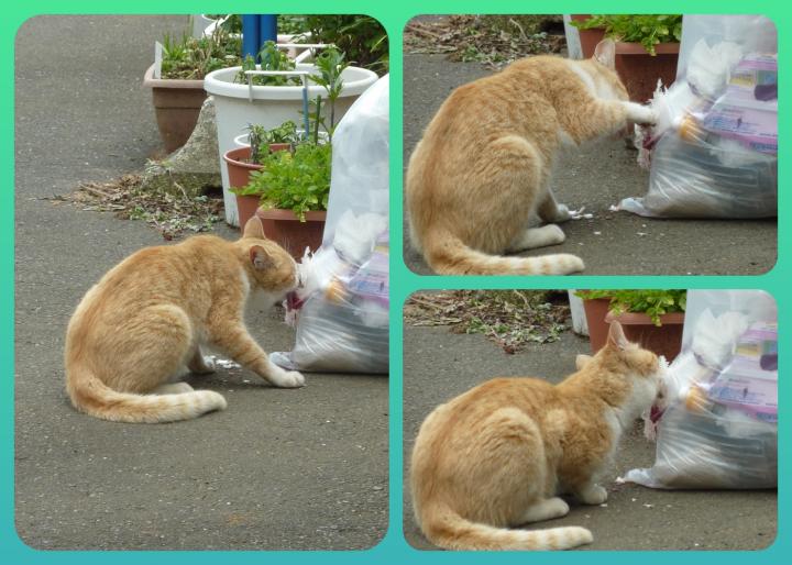 チャシロさん、ゴミ漁りしていました(-_-;)