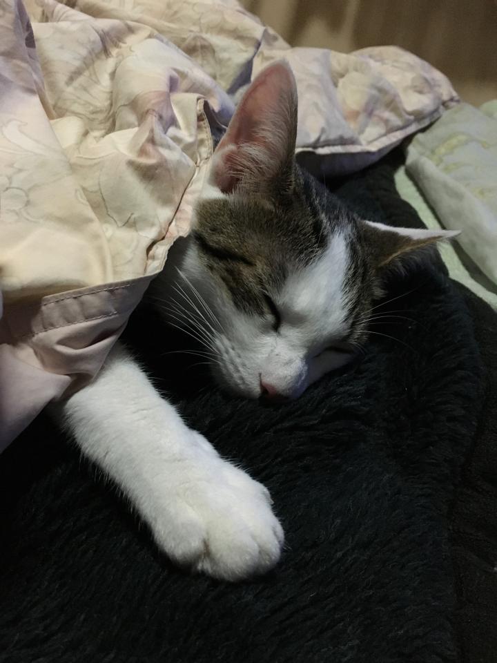 可愛いんだけど、毎回私の足を枕に使うのはどうかなー💧