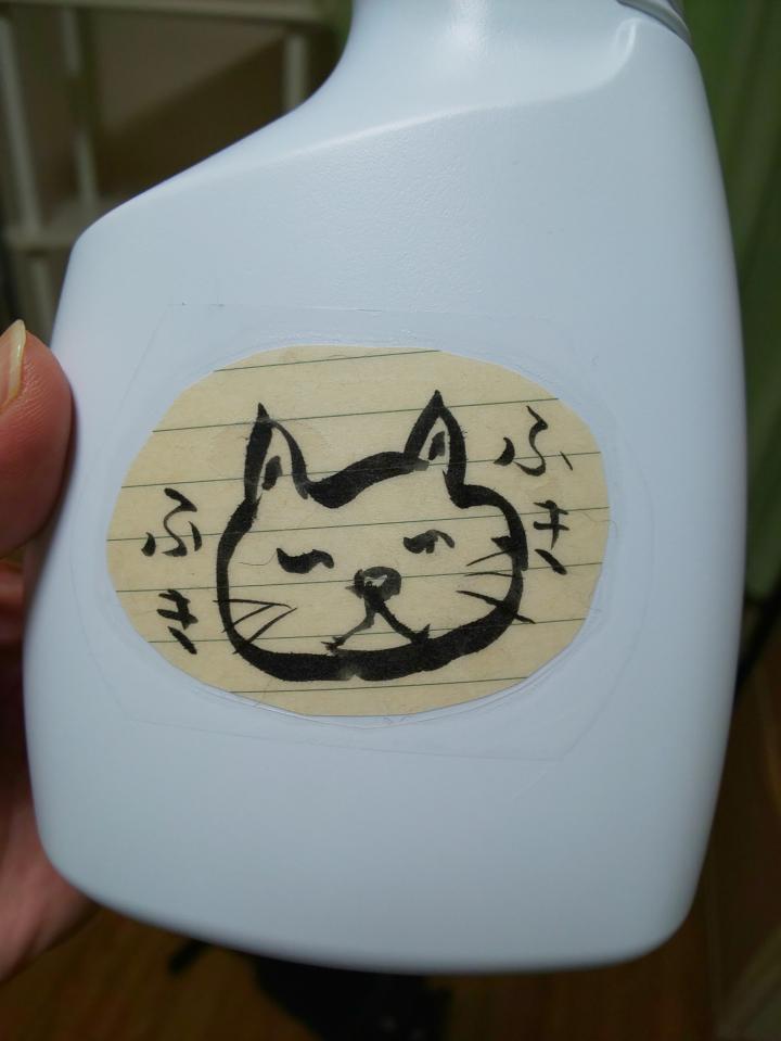 他のボトルにもこんなのを自分でも書いたりして3Mの透明テープでペタリ。