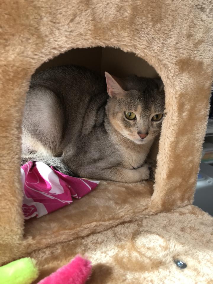 新しい家族のおうちに来たビビちゃん。まだ緊張気味です。早く慣れてほしいと祈る娘でした。