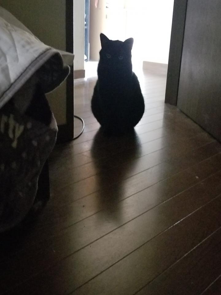 部屋の中やらベッドの上からで、クロを睨んでフーシャー言いながら追い出す日々…
