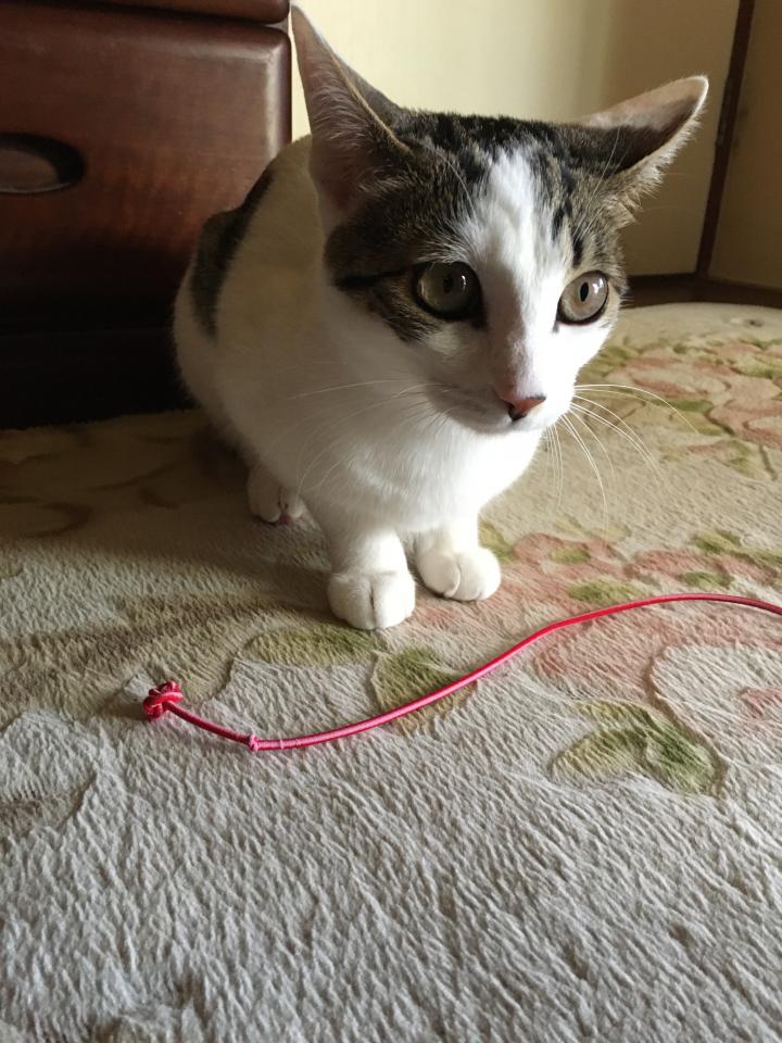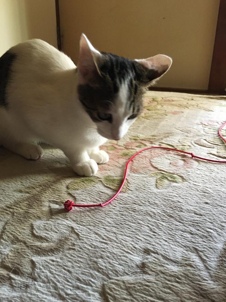 ミルクは朝から紐で遊んで欲しかったみたいで咥えてウロウロ💧