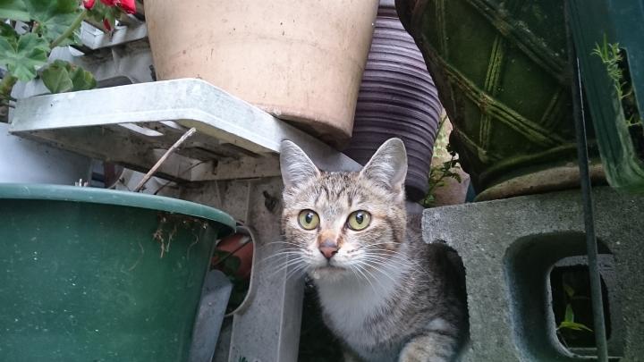 叔母の庭のブロックの下からご飯を食べに来てました。
