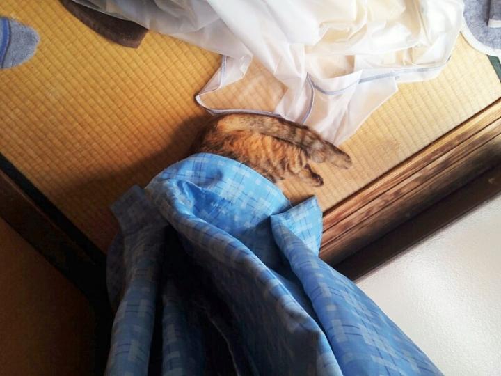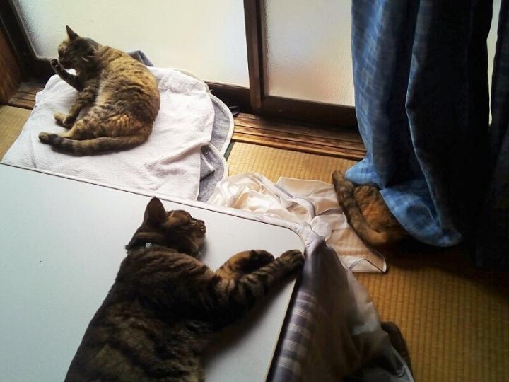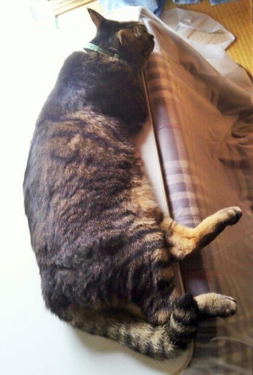 板間やコタツの天板やタンスの冷たい場所でお腹冷やしてる。