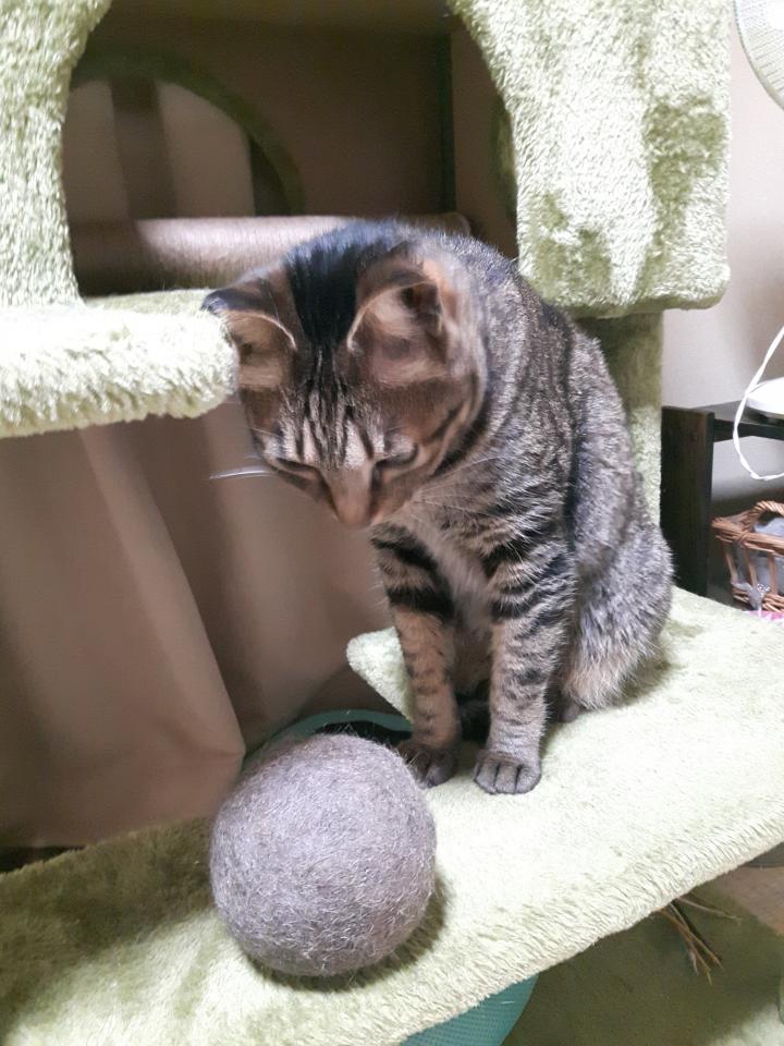 丁度ちびたの頭サイズの毛玉ボールが出来て安心しています