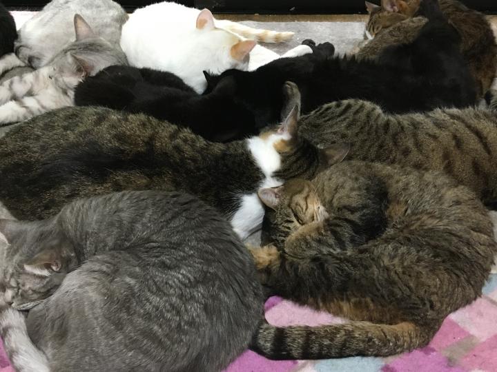 しばらくして、寝室の猫たちが一斉に走り出しました。