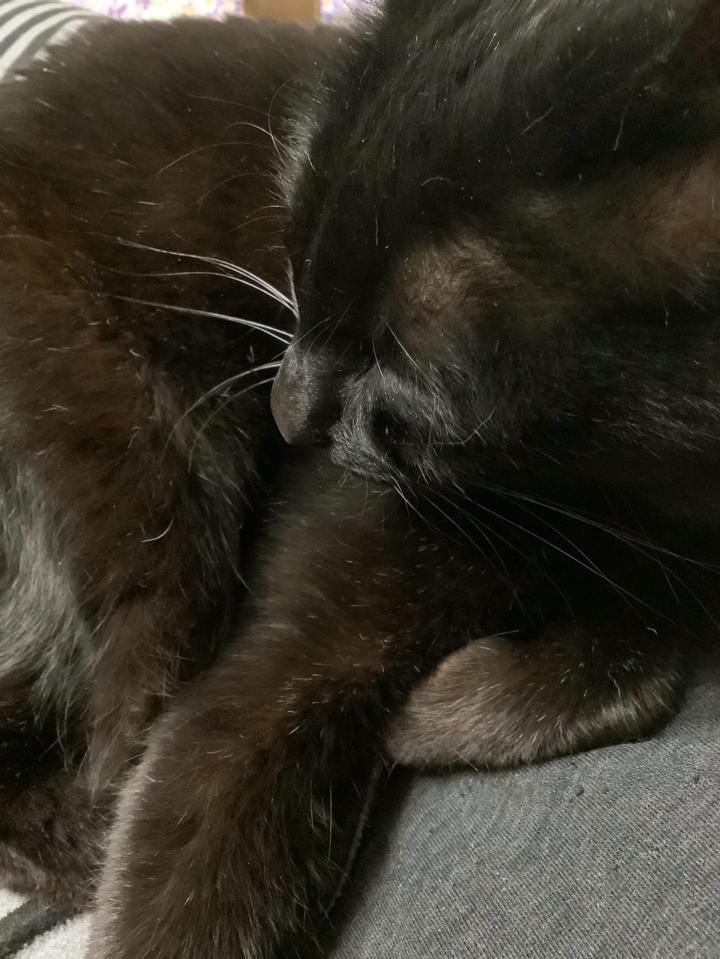 最近は膝の上に乗ってきたり、昼間一緒に寝たりするので、親近感を覚えてくれているのでしょうか。前より甘えてきている?