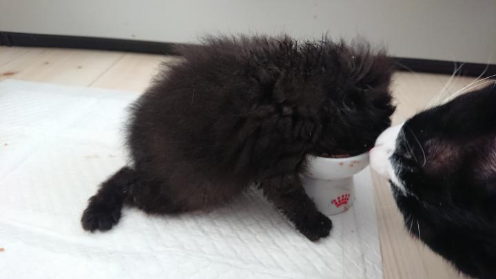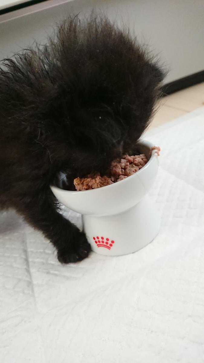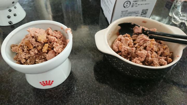 お昼に先生に言われまして、離乳食からカリカリに移行するためロイカナを混ぜる‼️