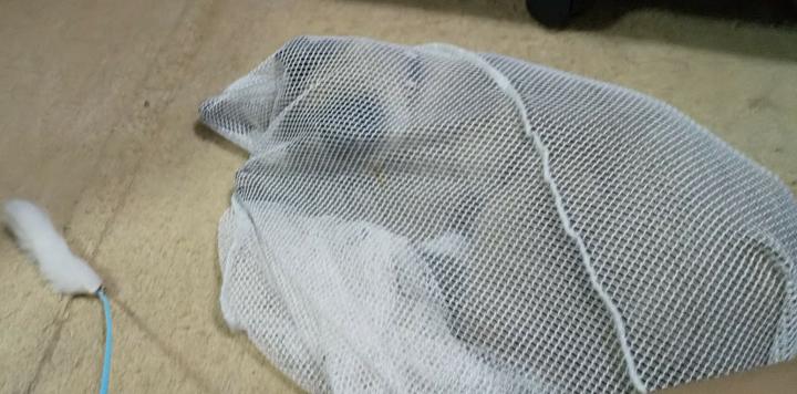 不織布かくれんぼをしばらくしていなかったのですが、思いついて洗濯ネットかぶせたら