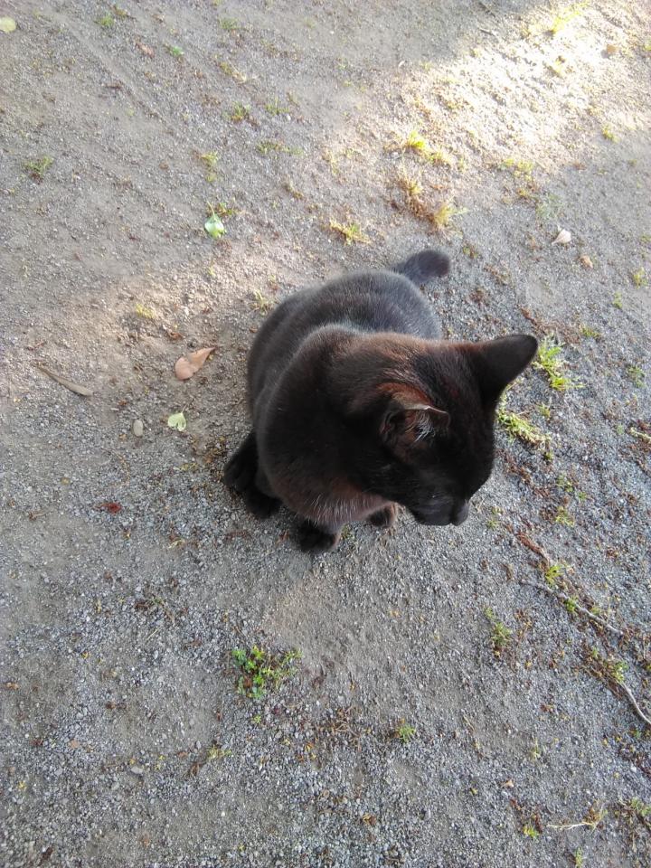 最近、近くの駐車場で少し赤茶けたクロちゃんにご飯をあげた