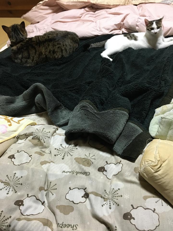 ただ今リアルタイムで私の布団が猫布団になりました笑