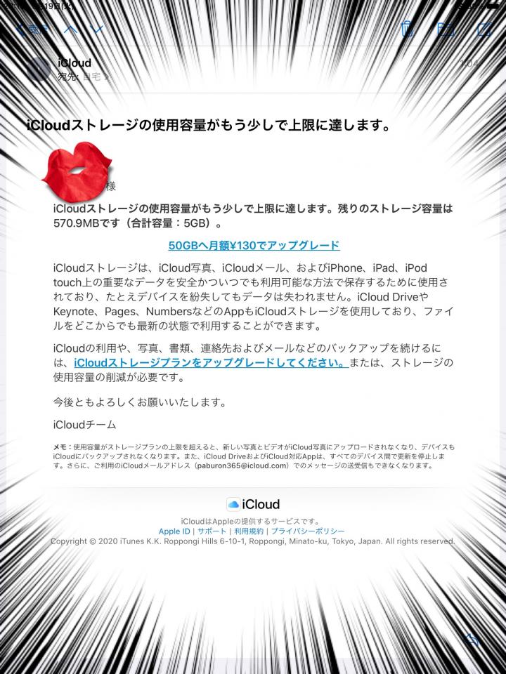 調子に乗って写真や動画を保存していたら、🍎から再三のメールが。