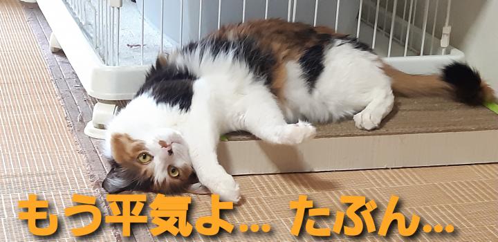 カリタが消毒してる間に5回くらい吐いたようで、トータル「12~13回くらい吐いたんじゃない?」とのこと(さすがにそこで嘔吐は止まりました)。