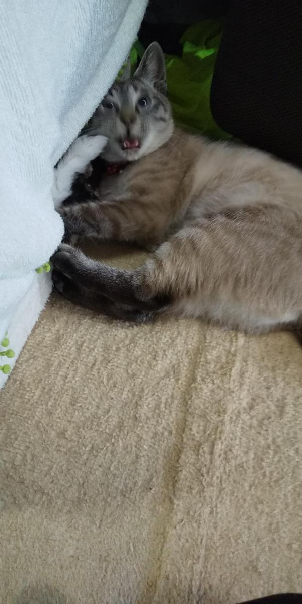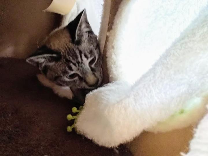 この布から猫じゃらしかくれんぼしたら、今日の食いつきはすごかった!!!
