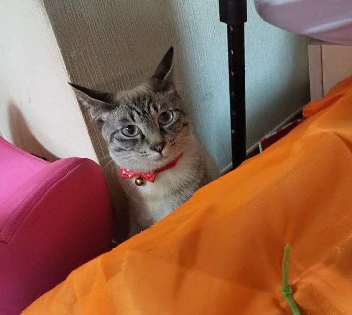 誰かが来ると私のベッド横のテーブル下のスペースに潜んでイカ耳で聴き耳を立てています。