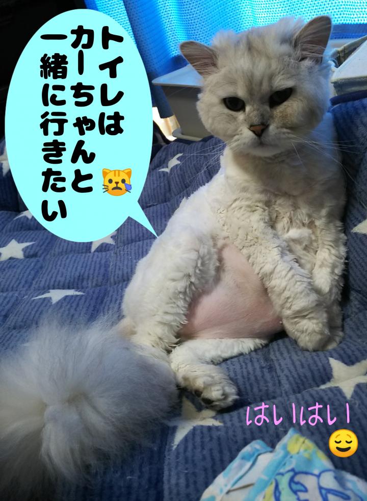トイレのお迎えに「待ってたの?」と声をかければ、体をスリスリ擦り寄せ甘える。