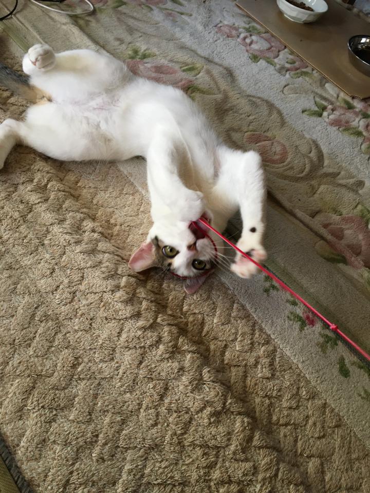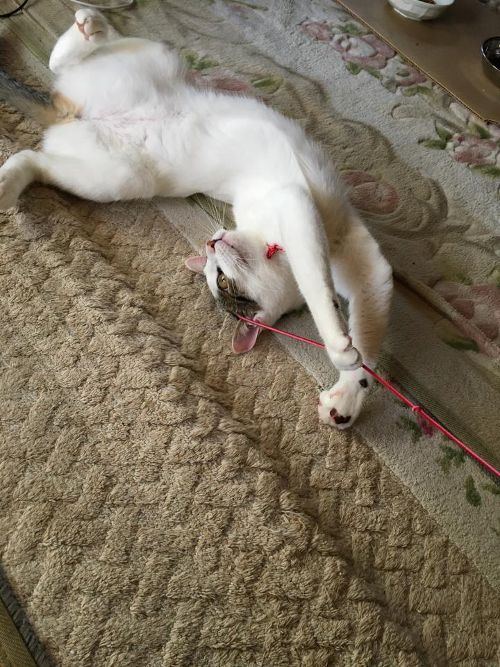 一方、お散歩が終わって帰宅したらミルクがまたもベタベタとしてくれた挙げ句にコロコロしながらオモチャ要求笑