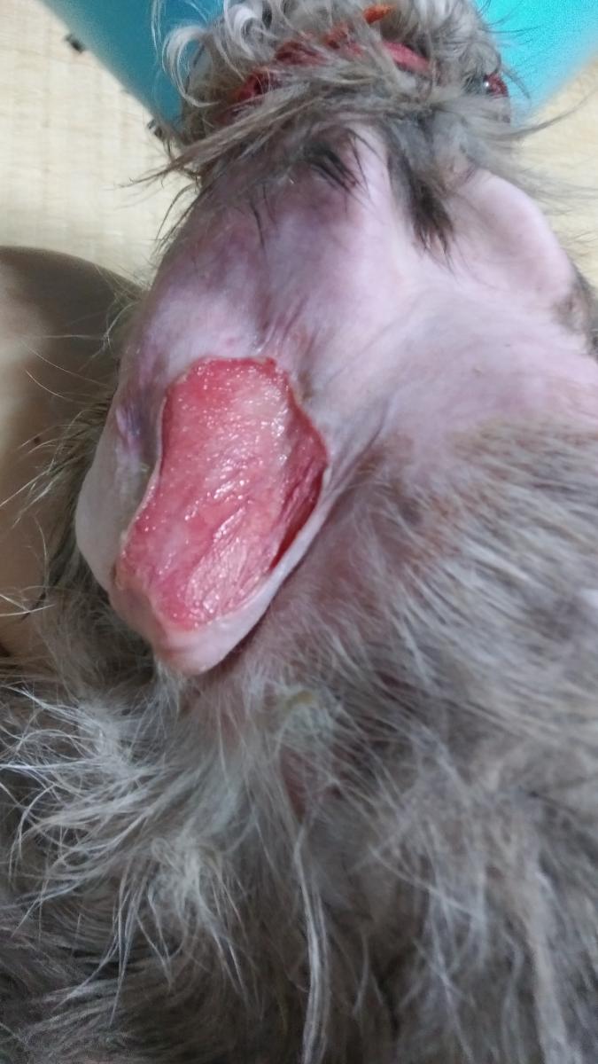しかも薬を塗って治りかけた~って思ったら、痒いらしく、目を離している間にガリガリと…。