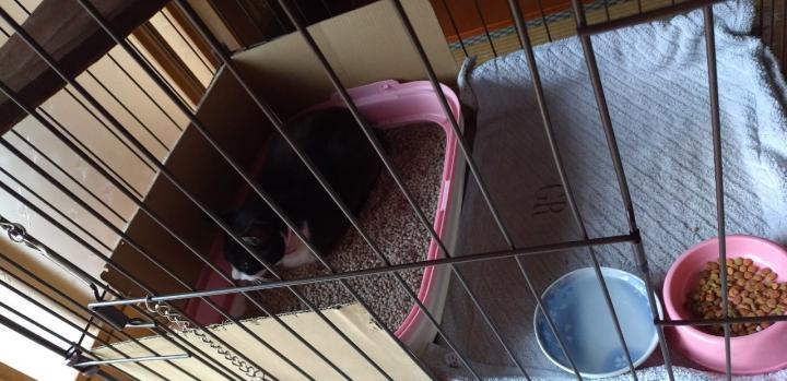 だから病院帰りにコメリでゲージとトイレ買って家猫初日!ってなったのよね???