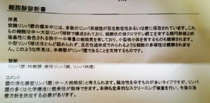 「まずBではなくTというのが…けれど一番悪いのが小さな細胞でTなので、それはまぬがれました」