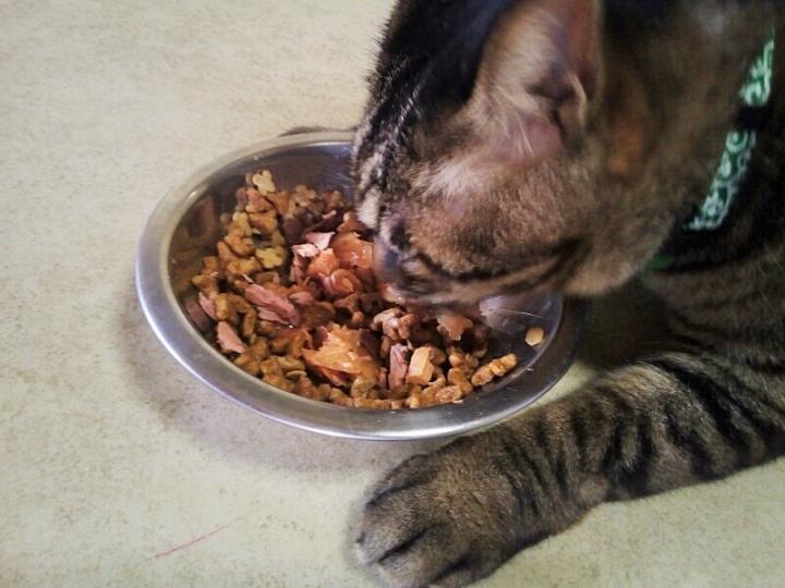 んで、完食してからの別皿いれてた缶詰&カリカリごあーん。高カロリー粉末混ぜます。